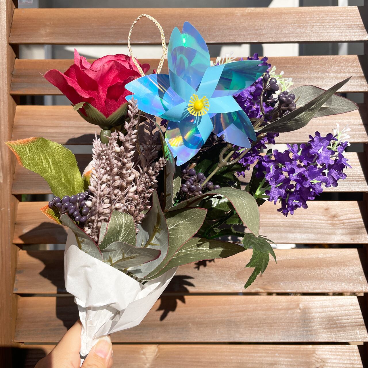 桜の花を模した可愛らしいデザインの羽で、風を受ければとても良く回ります。