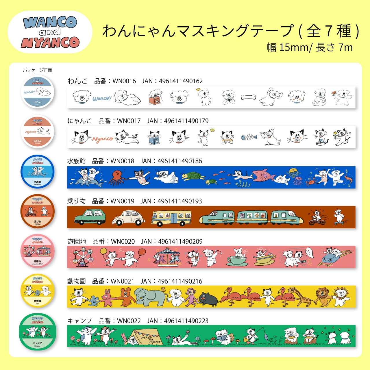 W&N わんにゃんマスキングテープ【遊園地】